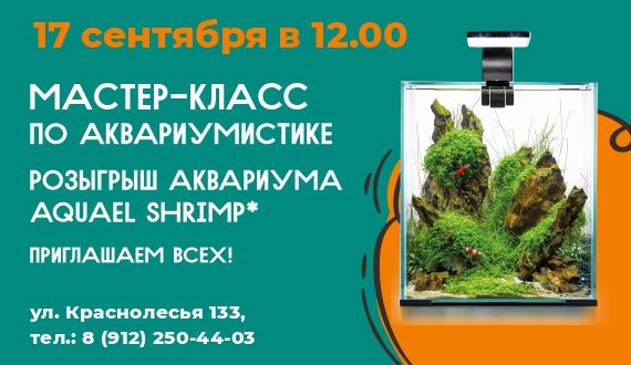 Мастер-класс по аквариумистике и розыгрыш аквариума Aquael Shrimp будет проходить 17 сентября с 12:00 в ТЦ Академический